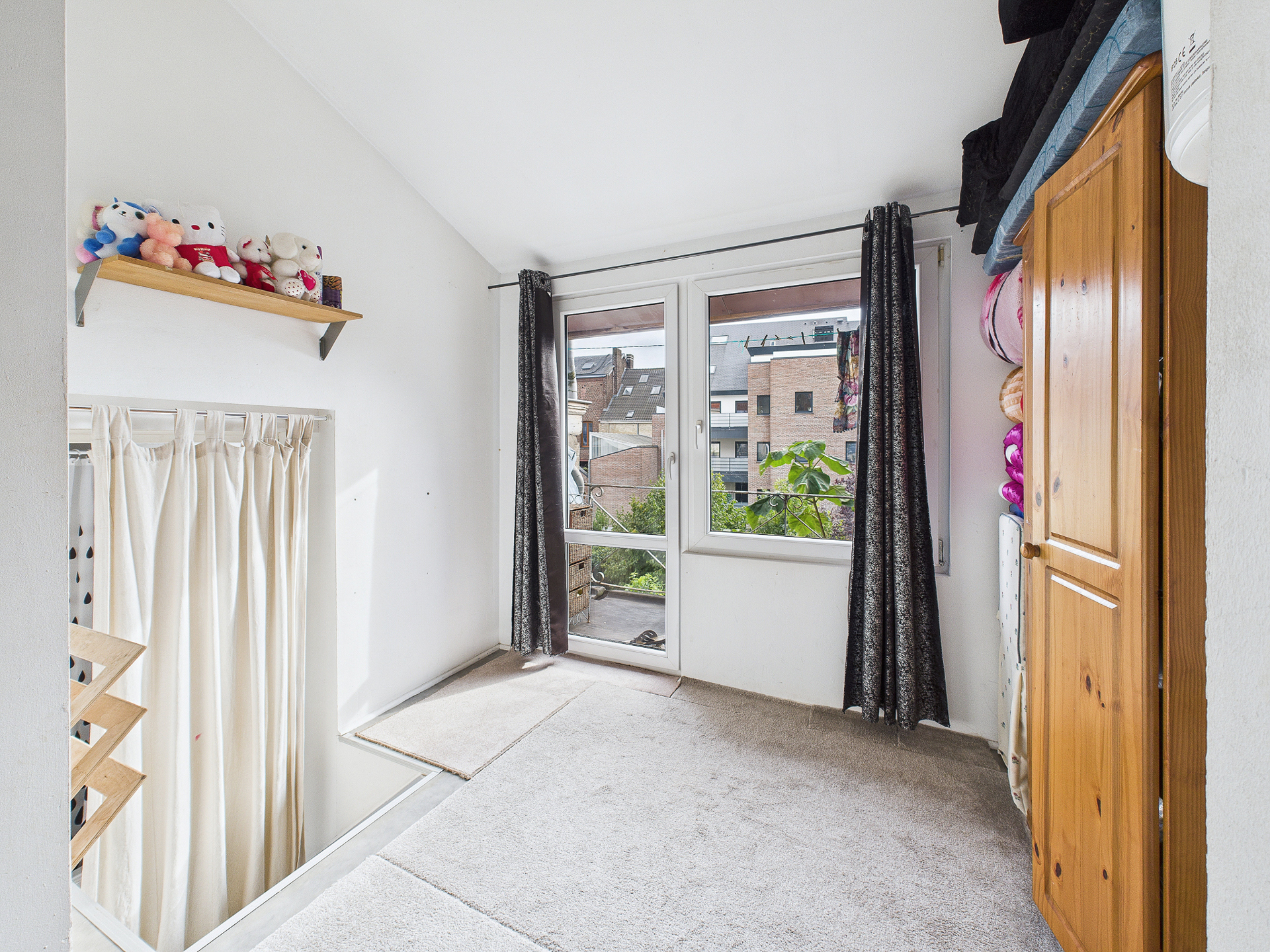 • 3ème étage (46 m²) : cuisine (plaque vitrocéramique, hotte, évier inox), salle d’eau avec douche et meuble vasque, WC séparé, châssis bois double vitrage, chauffe-eau électrique « Van Marcke ». 550,00 euros/mois. PEB: G.