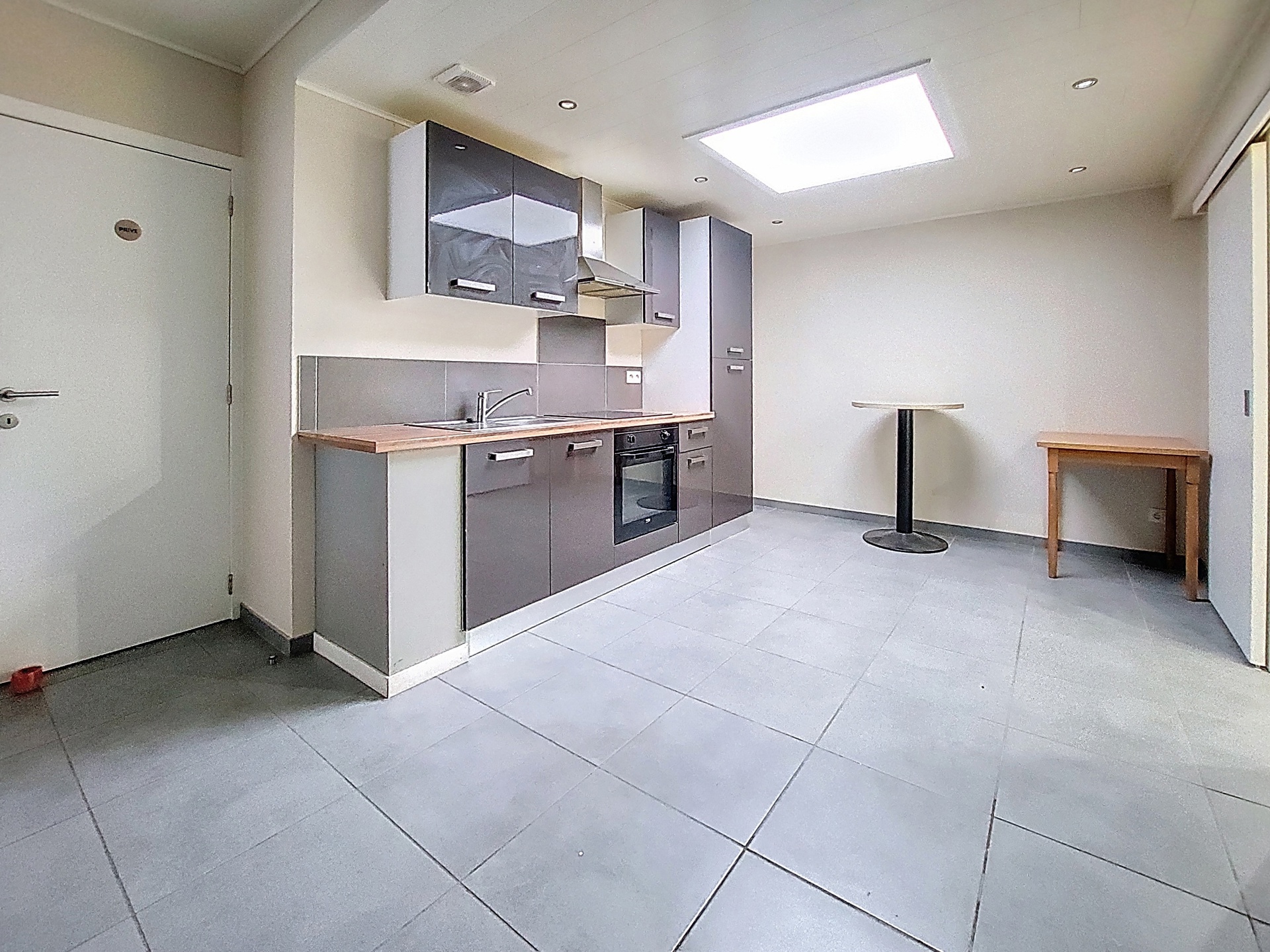 Cuisine equipée d`un évier, four, taque vitrocéramique, hotte, rangements, emplacement machine à laver,