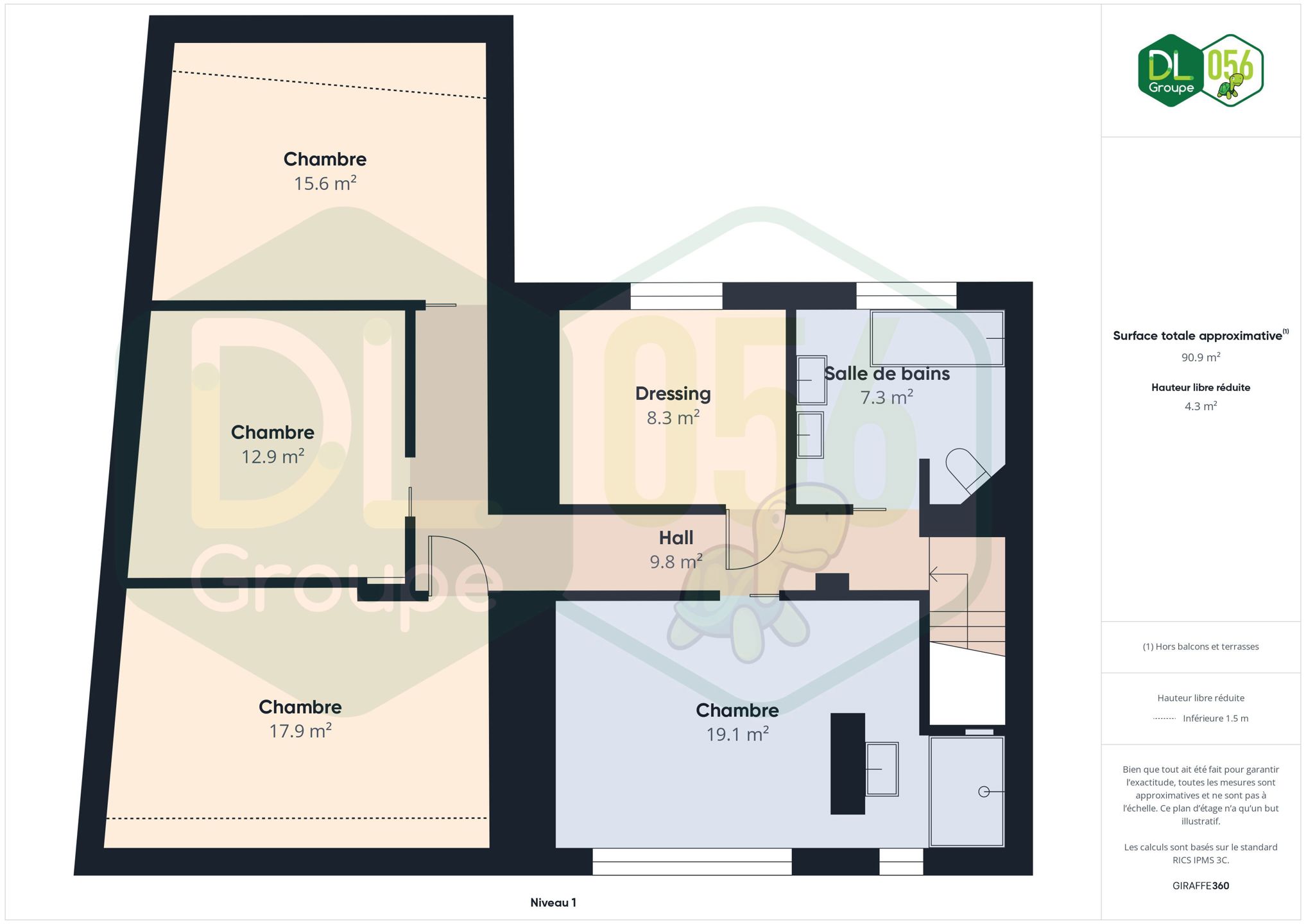 Au 1er étage : Hall de nuit desservant une suite parentale composée d’une chambre à coucher, d’un espace dressing, une salle de bains composée d’une double douche à l’italienne, d’un meuble lavabo et d’un sèche-serviette, 3 belles chambres à coucher, une salle de bains composée d’une baignoire avec jets hydromassants/douche, un meuble lavabo double vasque et un WC suspendu, un bureau/dressing.