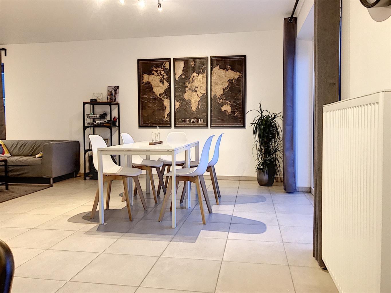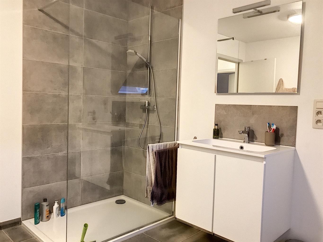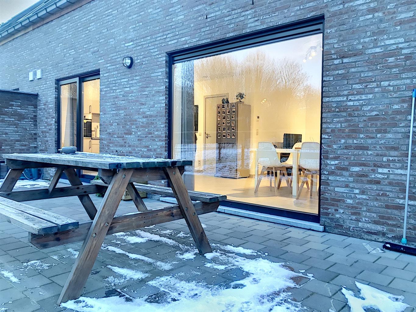 Rez-de-chaussée: Hall d`entrée, WC séparé suspendu avec lave-mains,Beau séjour avec cuisine ouverte équipée comprenant four, hotte télescopique, taque vitrocéramique, double évier et meubles de rangement,Accès au garage par la cuisine avec coin rangement sous l`escalier,Baie-vitrée donnant sur la terrasse et le jardin clôturé,Garage avec porte sectionnelle motorisée.A l`étage: [..]