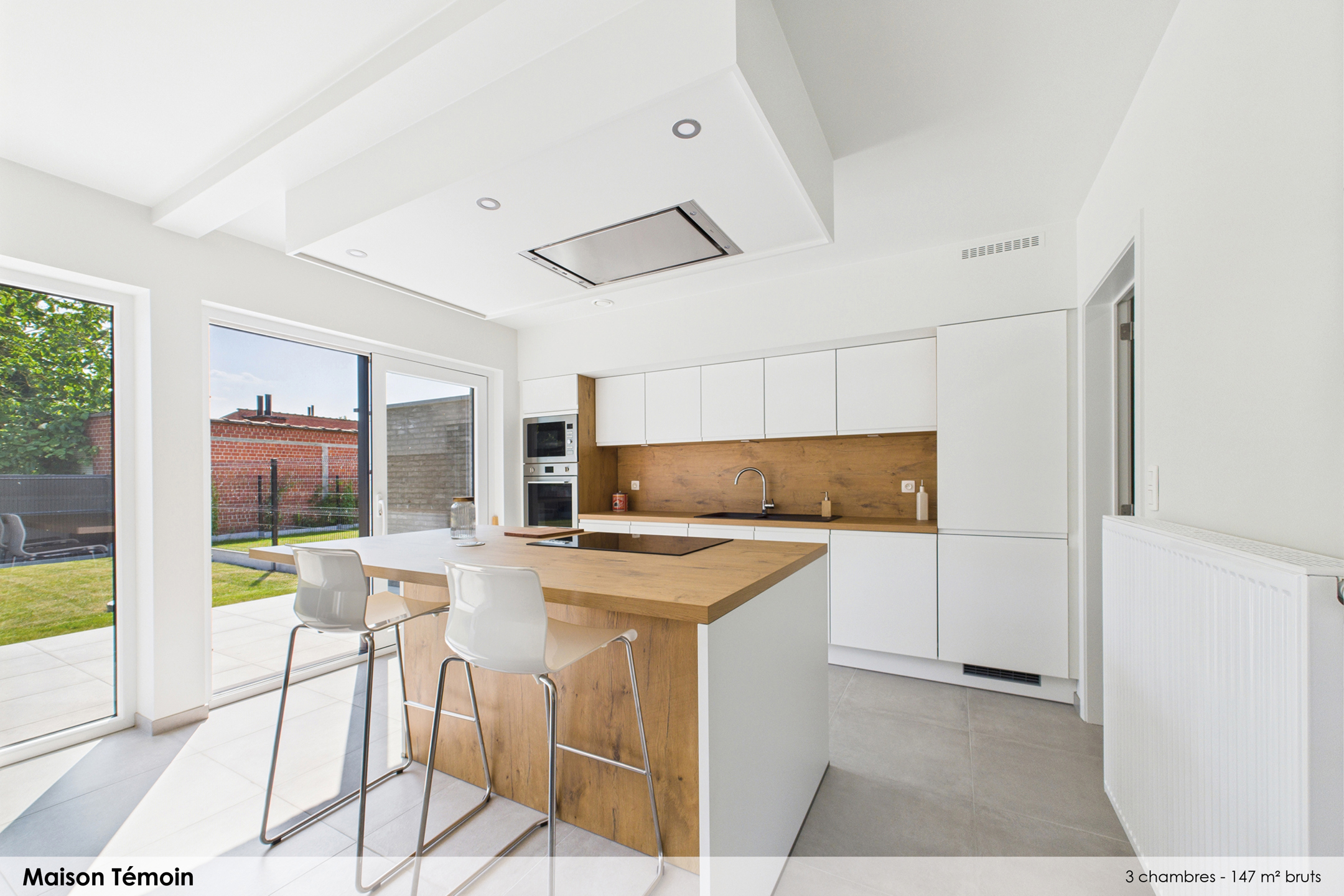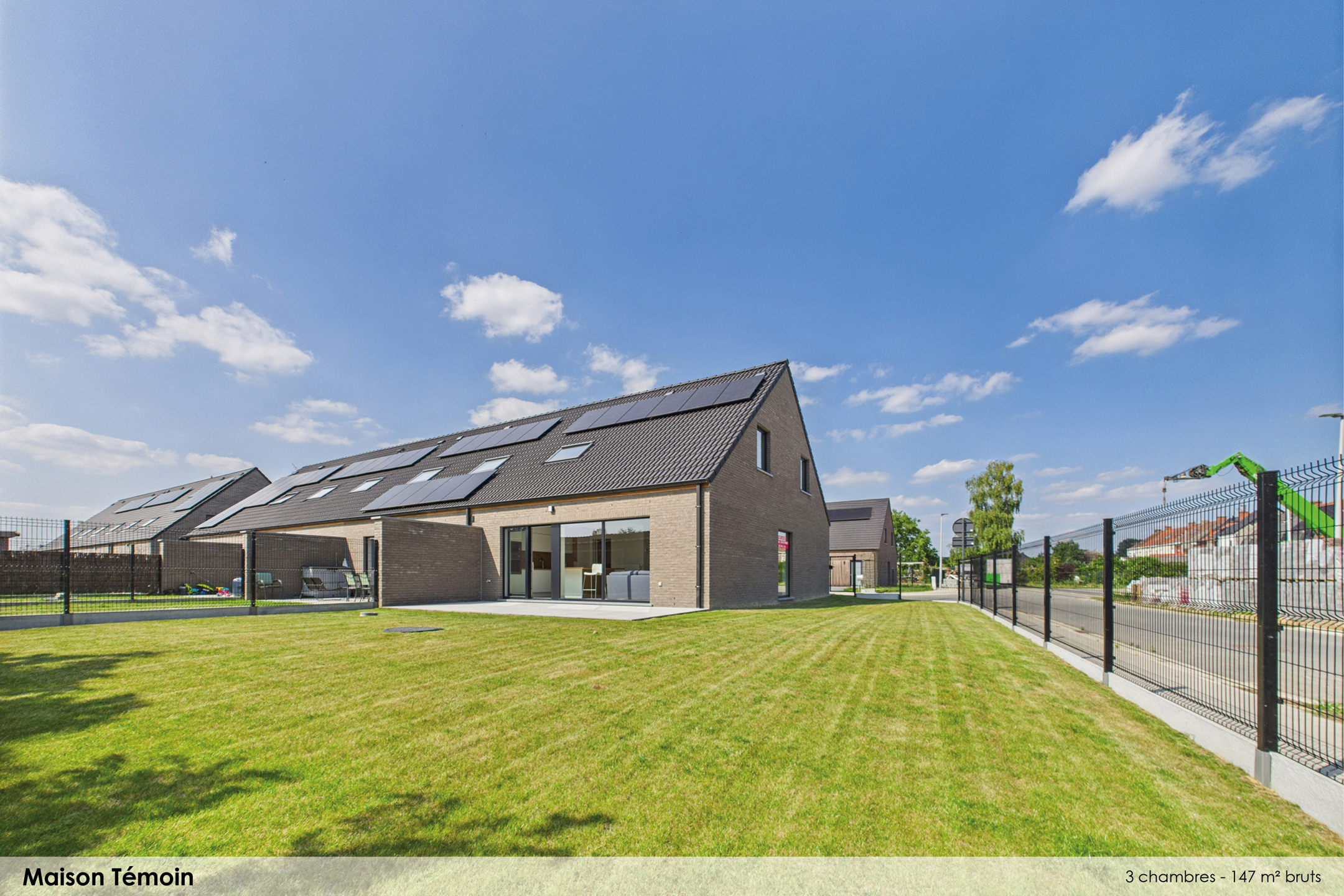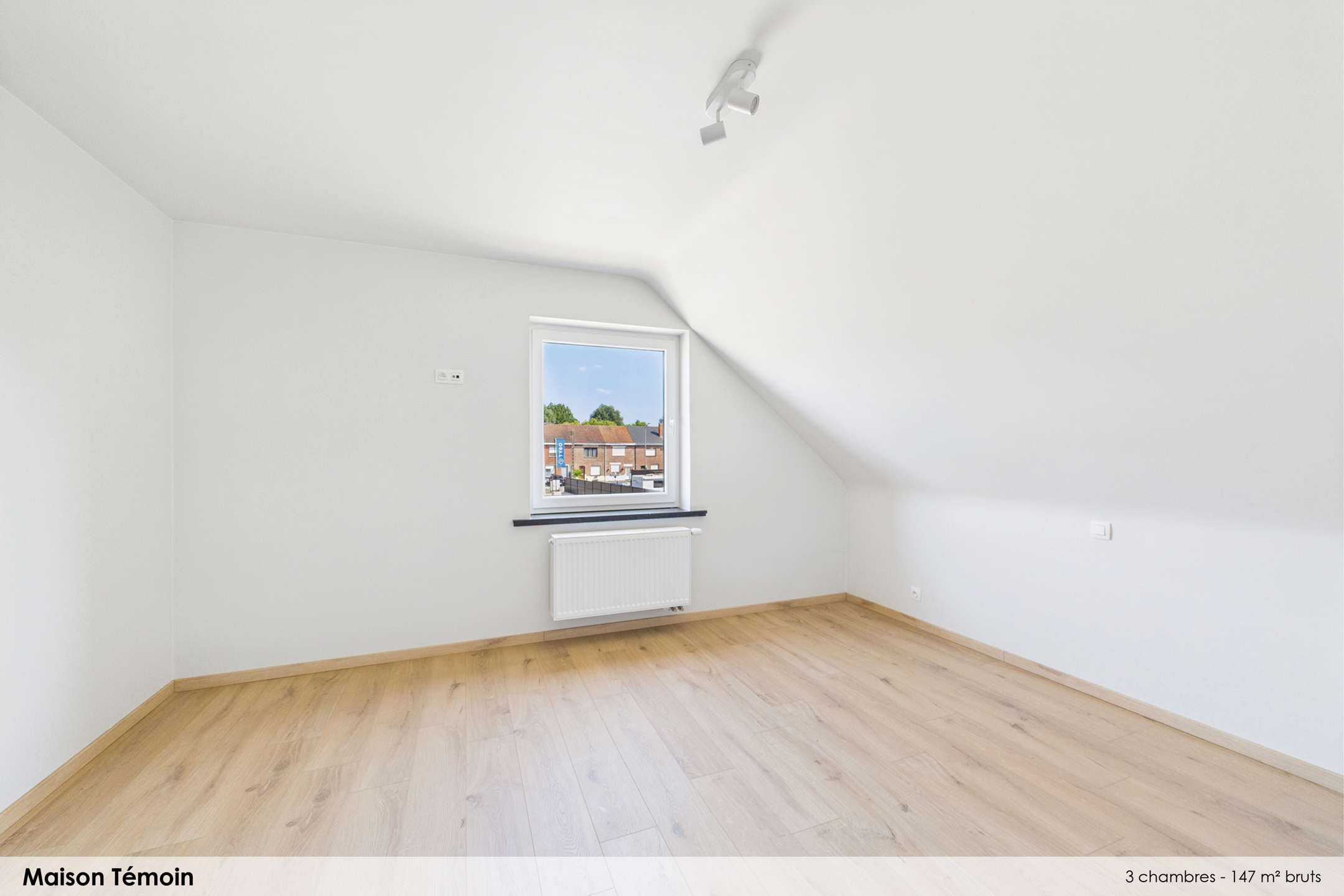 Maison 3 chambres avec jardin, garage et parking à Herseaux Prestations- Agencement - Rez-de-chaussée : hall d`entrée, WC séparé avec lave-mains, séjour avec cuisine ouverte VERVENNE- Agencement - Etage : 3 chambres dont une avec dressing et salle de bains avec douche, baignoire, meuble vasque et WC- Espaces extérieurs : terrasse carrelée et jardin clôturé non engazonné- Confort et [..]