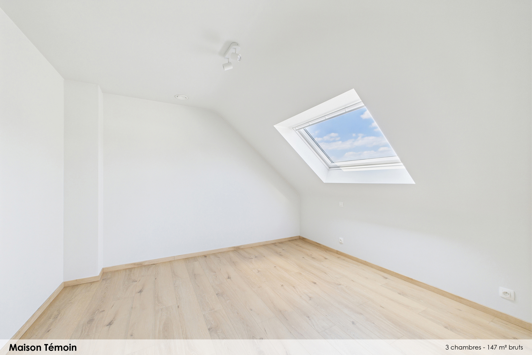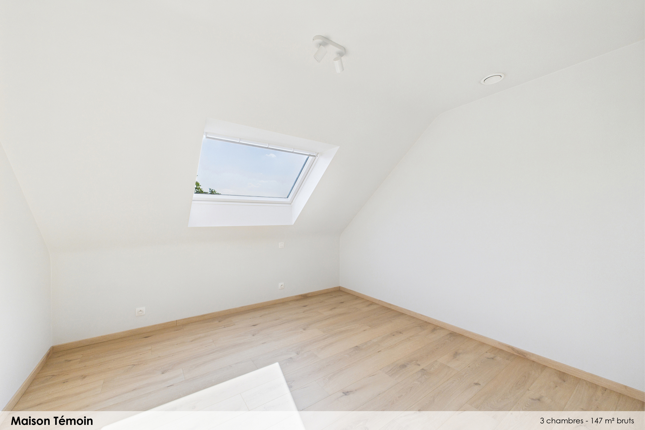 : châssis PVC double-vitrage, escalier en hêtre, porte de garage motorisée