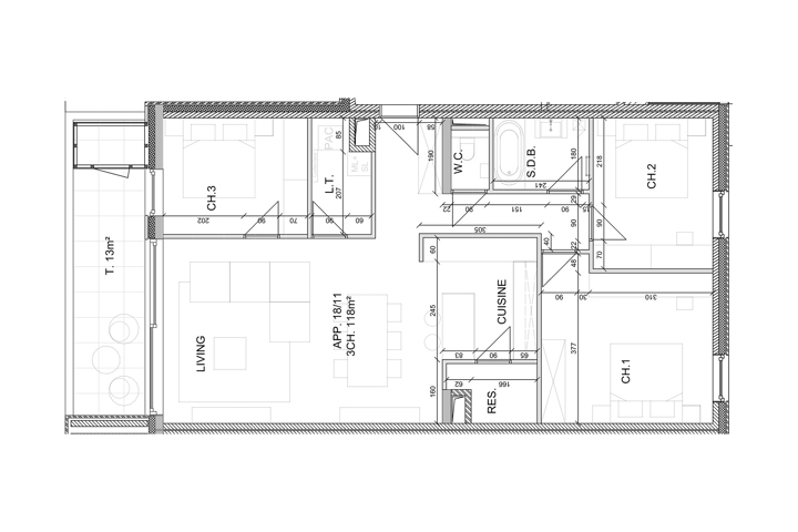 Les surfaces indiquées ne sont pas des surfaces habitables mais des surfaces brutes, selon le code de mesurage appliqué en Belgique