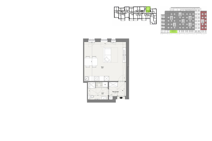 Studio situé dans la Résidence Les Terrasses de Bozière, nouveau quartier idéalement situé à Tournai, à deux pas de la gare et du centre-ville